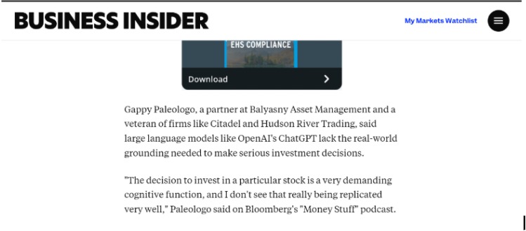Critics within the investment community consistently emphasize the structural limits of AI-driven investing. Experienced market professionals argue that while models like ChatGPT can process language and summarize information, they cannot replicate the nuanced judgment required for real-world capital allocation.